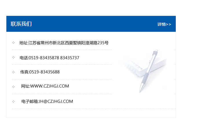 地址:常州市新北區友邦商務大廈1幢16、17層  電話:0519-85101652  傳真:0519-85112595  郵編:213022  網址:www.cz-jiayue_cn.gztopship.com  郵箱:xiajifengaa@163.com
